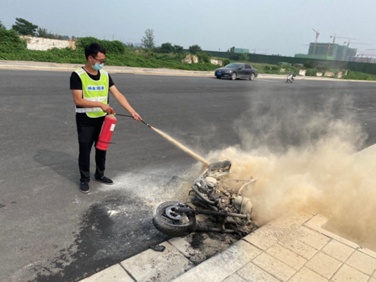 男女街头吵架点燃摩托车 幸亏郑州巡防队员及时扑救