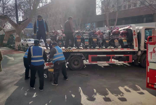 郑州市经八路街道联合执法 整治黄河路电瓶车市场占道经营